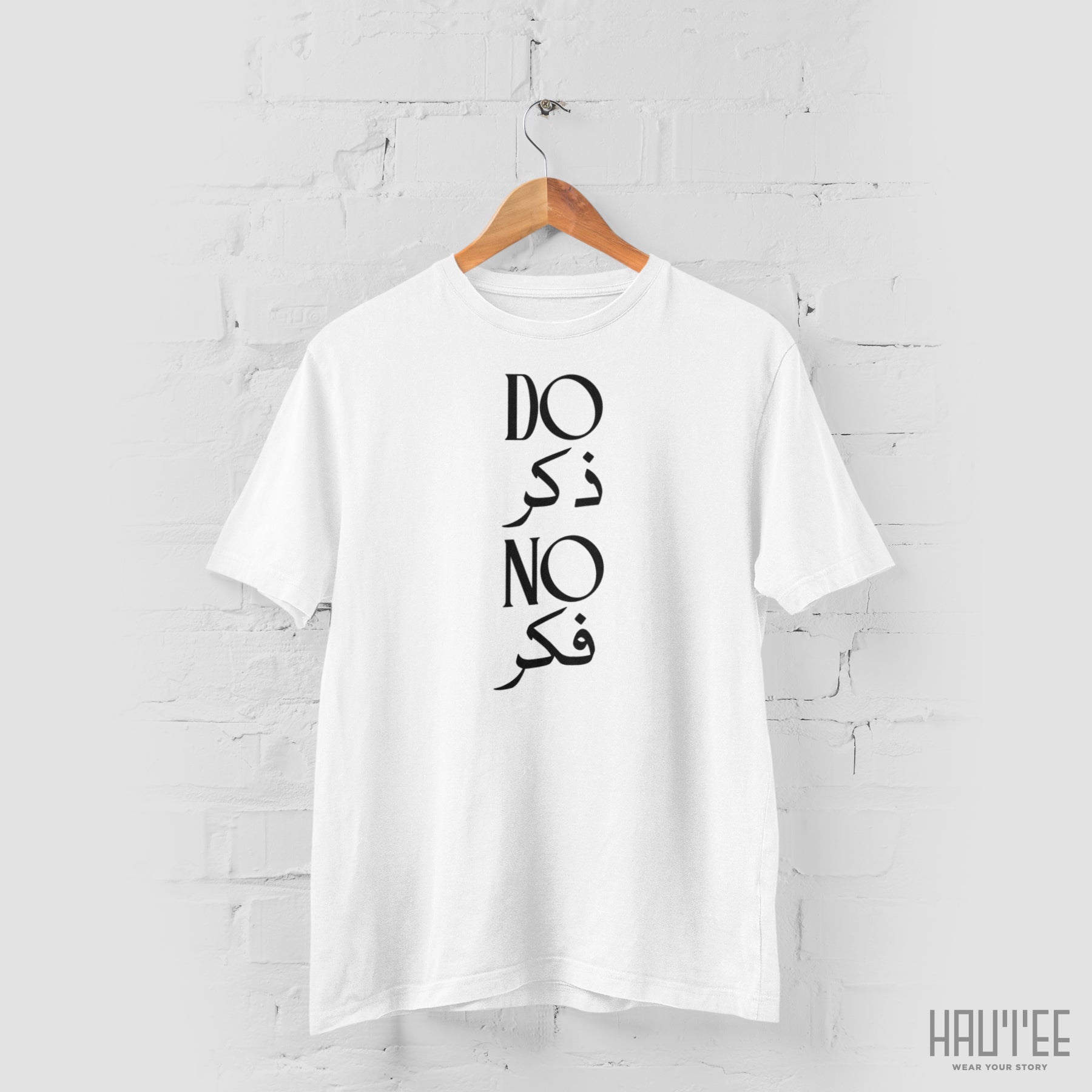 Peace of mind through faith - zikr over worry. Crew Neck T-Shirt. Made of comfortable cotton, this regular fit shirt is calm and meaningful.