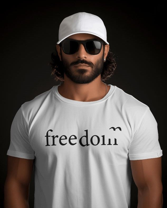 Say it loud, freedom is priceless. Crew Neck T-Shirt. Made of comfortable cotton, this regular fit shirt is powerful and bold.