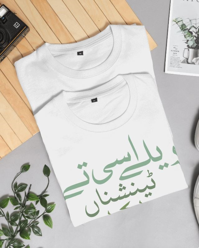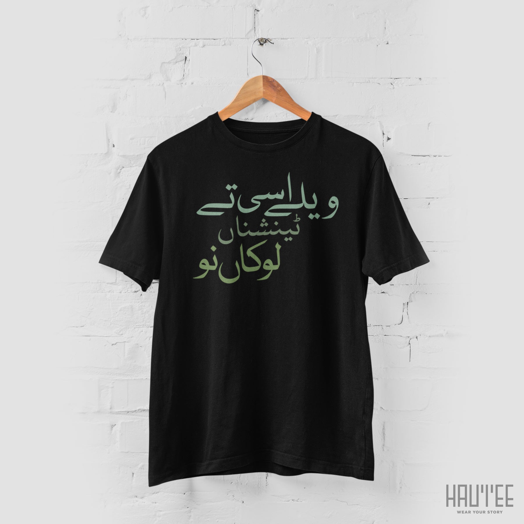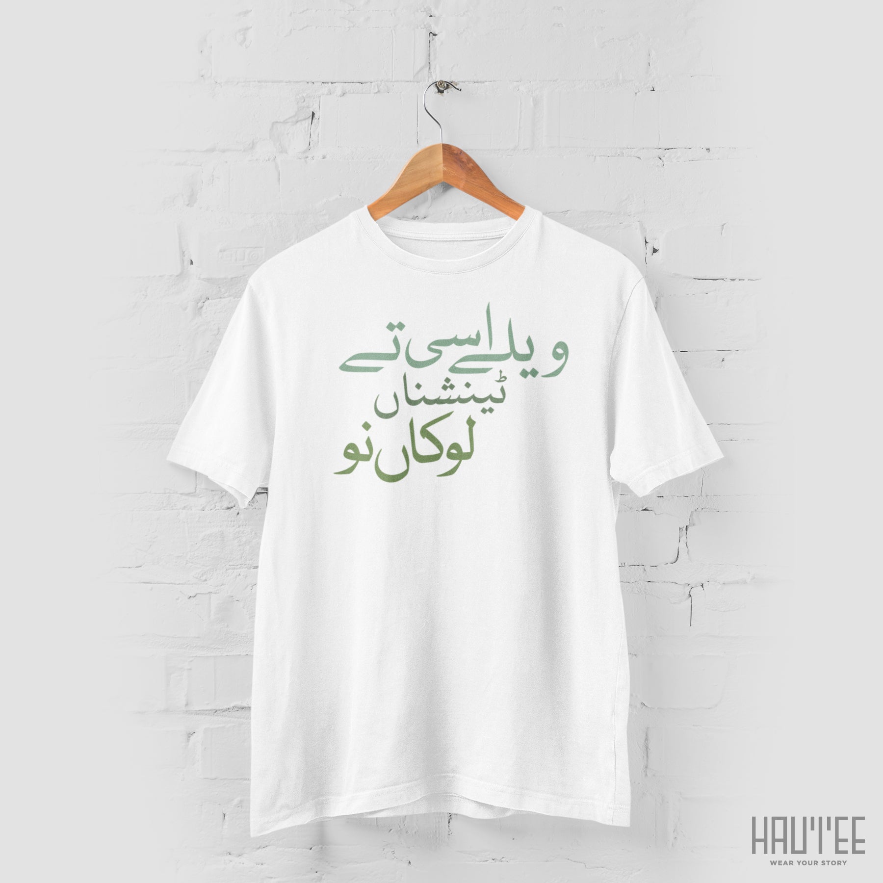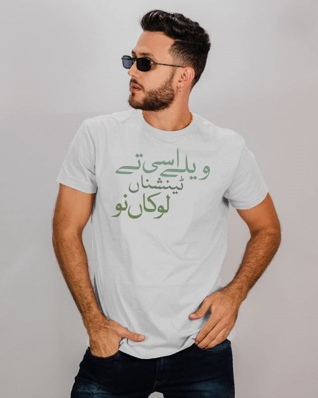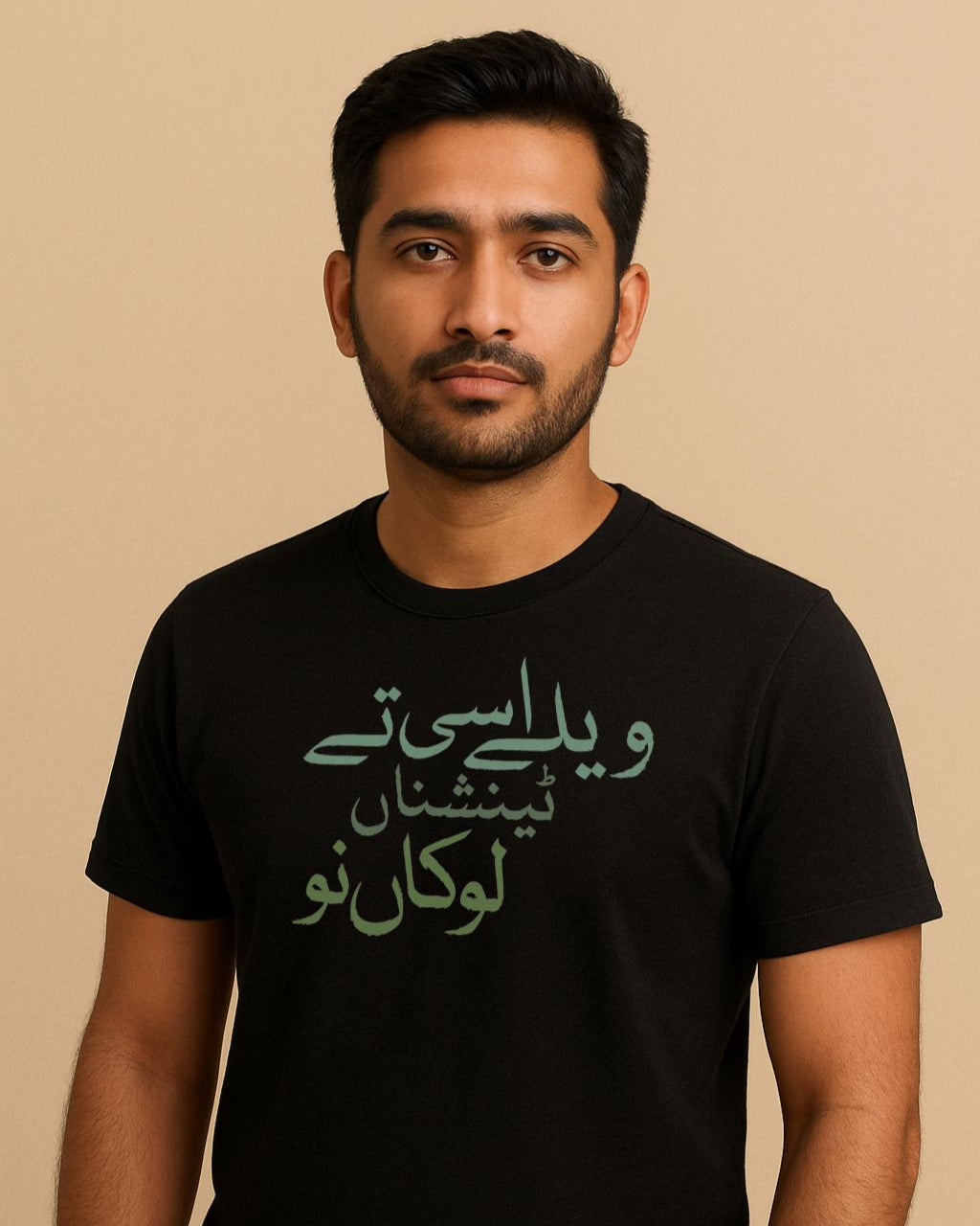 A carefree Punjabi vibe that says “we chill while others stress.” Crew Neck T-Shirt. Made of comfortable cotton, this regular fit shirt is relaxed and fun.